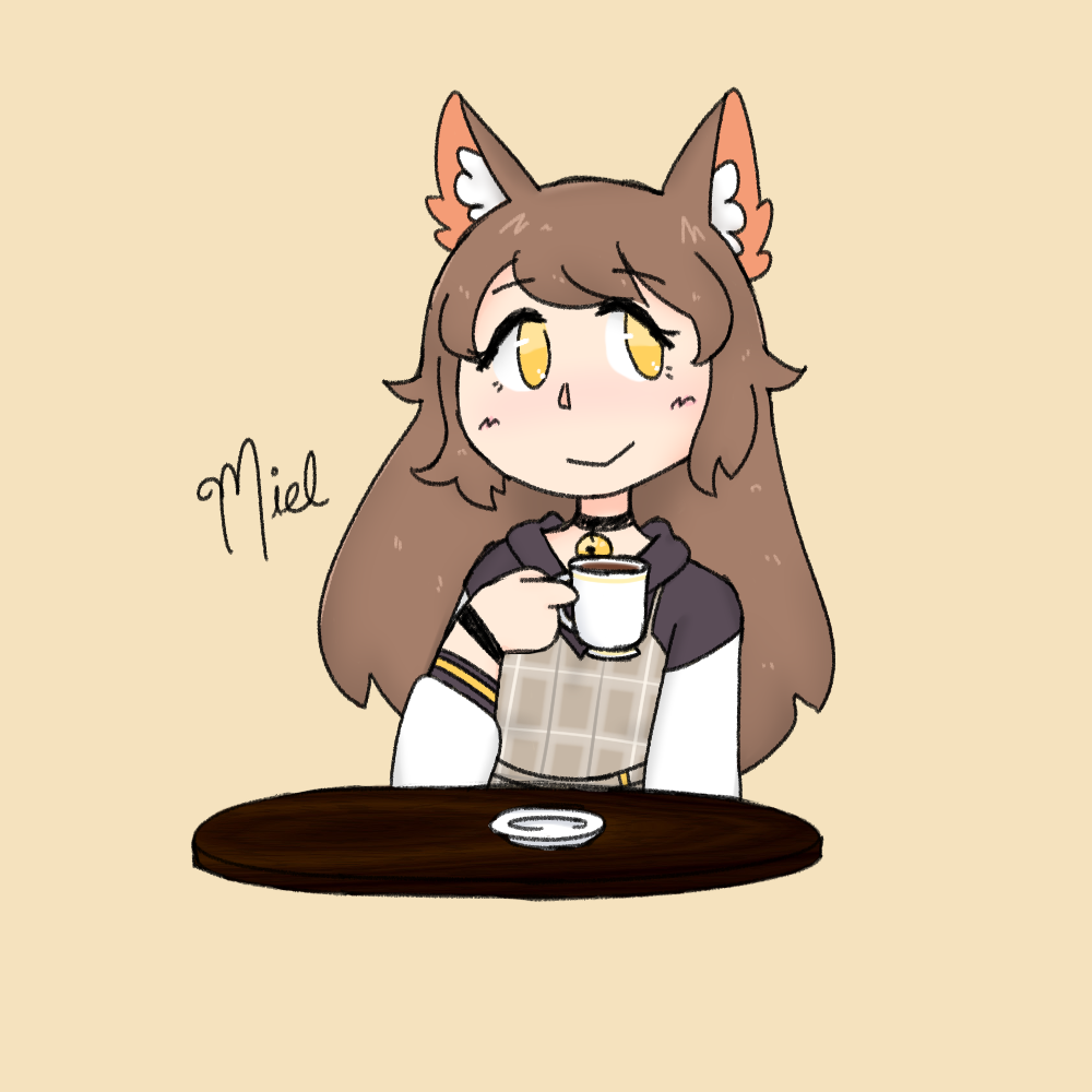 Miel is a optimistic and hard working catgirl with tomboyish tendencies. She is kind and loves with her whole heart to the fullest, but her bright personality combined with her energetic demeanor can be a bit much for some people. Combined with her unusual love for swimming and other sports compared to other catgirls, some might even joke that Miel is more akin to a dog than a cat. She is also known to be very sweet, and has quite a sweet tooth, too.