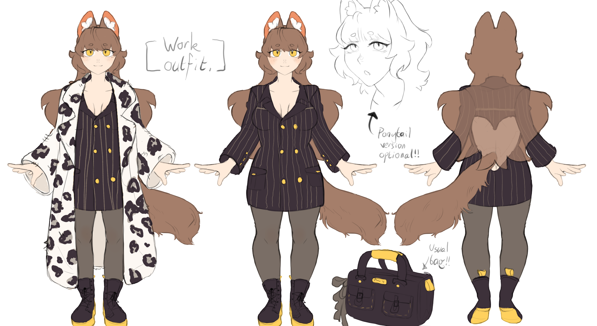 - She naturally has wavy hair, but many of her jobs require her to straighten it out at least somewhat. She does take really good care of her hair and fur though, and wears her natural hair when she gets to spend a lazy day in.